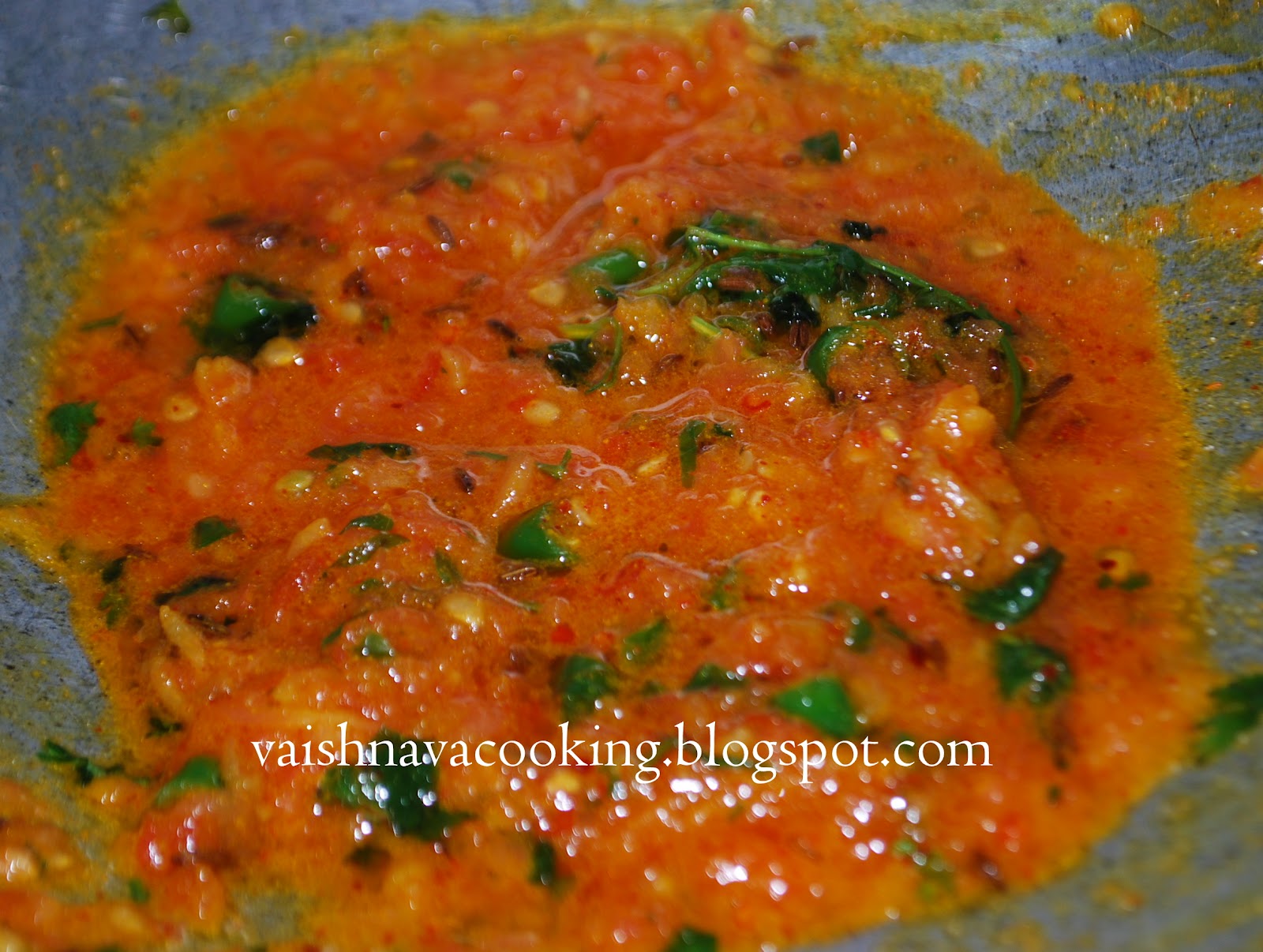 - Add chopped tomatoes fry till the mixture starts leaving oil.